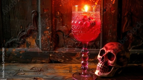Glowing Red Cocktail with Skull Decoration