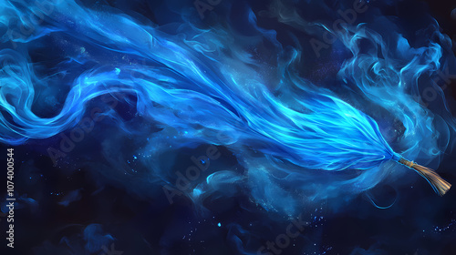 Closeup blue smoke cloud magic broom sparkling spirits flowing fabric league legends arcane space ghostly floating deep liquid glass mistic. Arcane. Illustration