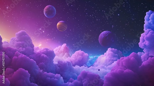 Vibrant deep space banner background featuring various stars planets and cloud formations illustrating that space is not only dark and deep but also abundant with heavenly light and color depicted