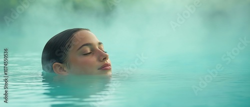 A young lady takes pleasure in a bath of natural thermal waters..