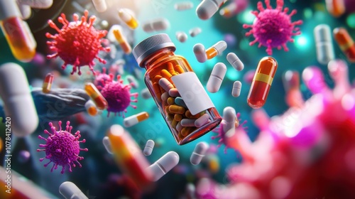 Explore the impact of antibiotic resistance through a close-up of pill bottles