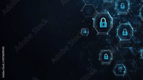 Abstract digital background with hexagon shapes and padlock icons for security and data protection.