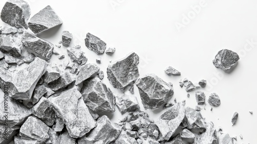 Multiple piles of crushed stone against clean wite background
