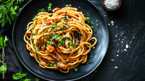 Tradycyjną włoska pasta z guanciale, która zachwyca autentycznością i głębią smaku.