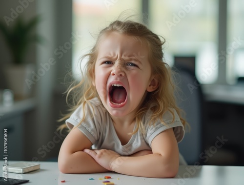 Navigating the Workplace with Maturity: Toddler Girl’s Tantrum as a Lighthearted Representation of the Challenges of Leadership and Immaturity in Professional Settings.