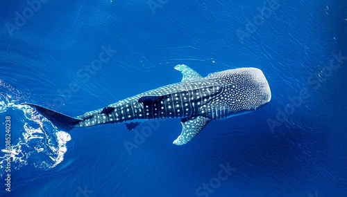 a whale shark gliding gracefully through the deep blue sea. whale shark (Rhincodon typus) is a slow-moving, filter-feeding carpet shark and the largest known extant fish species.
