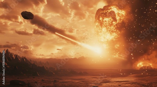 Meteoritehurls through atmosphere, creating sonic boom as it approaches.
