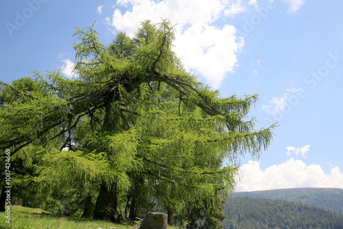 Lärche (Larix) Baum auf Hügel in Landschaft