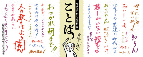うちのおじいちゃんが書いた手書き文字の素材セット/文字素材、落書き、手書き文字(カラー)