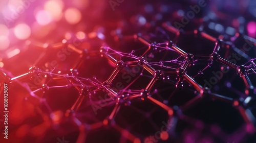 A 3D illustration of graphene's atomic structure, with a hexagonal molecular grid pattern, highlighting the revolutionary potential of nanotechnology.