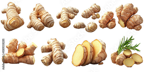 Fresh Ginger Root Collection with Various Cuts and Styles for Culinary and Herbal Use, Ideal for Recipes, Natural Remedies, and Food Photography