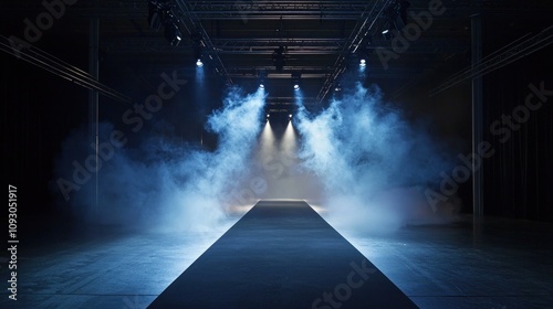 Modern runway with dramatic effects and smoky ambiance
