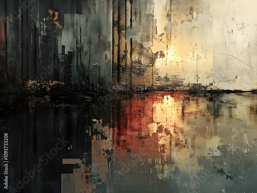 Create a highquality abstract industrial artwork that captures the biting cynical essence of vanity insincerity and the superficial nature of fame Blend harsh textu