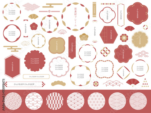ベクター素材の年賀状や正月シーズンのバナーなどに使える赤色の和素材フレームコレクション