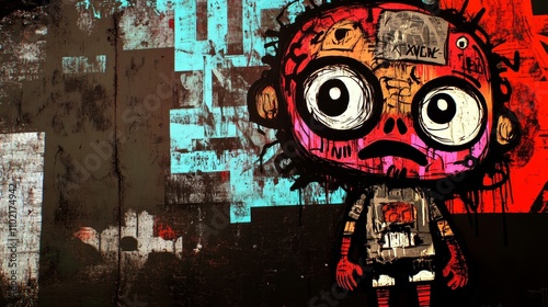 young boy character design with unique graffiti oil painting artful illustration with grungy texture, expressive funky