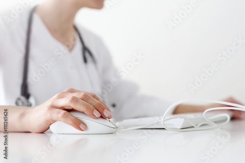 Gabinet lekarski, lekarz przy komputerze
