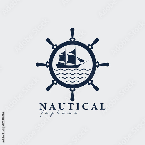 steering wheel ship wave logo vector illustration design