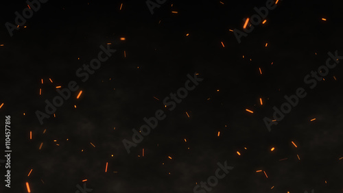 Glowing cinematic fire particles rising up with smoke and haze. Fire sparks flying fast with the wind. Bonfire, fire flakes background, fire ashes flow. Hot burning blaze, big flame, and disaster.