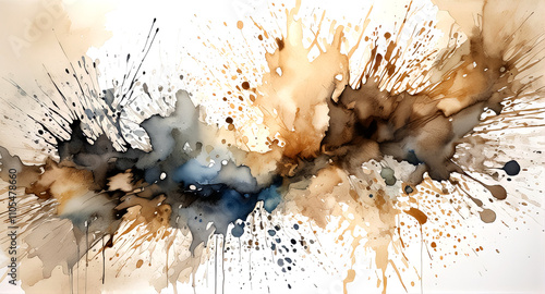Abstrakcyjna kompozycja brązowych i czarnych farb akwarelowych, płynnie mieszających się, tworzących śmiały i dynamiczny wyraz artystyczny