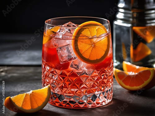 Energetyczny napój podawany ze świeżym plasterkiem pomarańczy, idealny na orzeźwiający letni napój lub koktajl