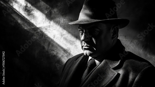 Mob boss depicted in a noir-style setting, emphasizing intrigue and authority