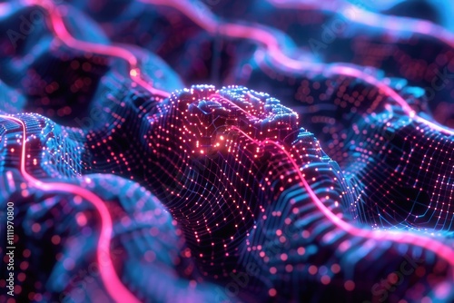 Abstract Digital Landscape with Pink and Blue Neon Lights