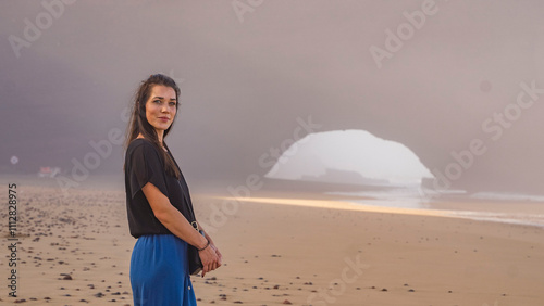 młoda dziewczyna ocean atlantycki legzira plaża czerwona pustynia maroko agadir marrakesz