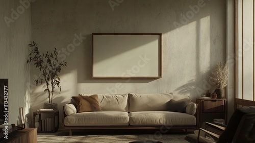Modern Minimalist Living Room Interior Design With Empty Frame
