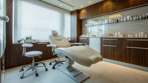 Wnętrze kliniki dermatologicznej i salonu piękności dla klientów VIP odzwierciedla dbałość o każdy szczegół, tworząc unikalną przestrzeń relaksu i komfortu.
