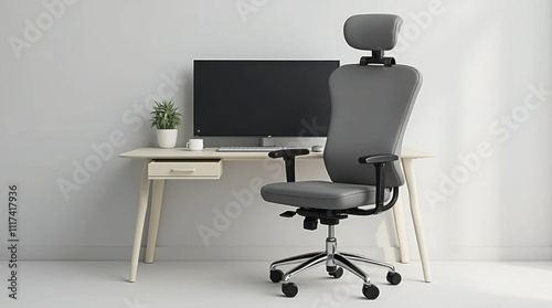 Minimalist Office Setup with Sleek Monitor and Ergonomic Chair