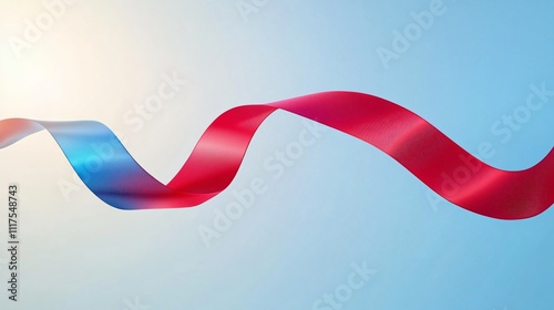 Abstract design with red and blue ribbons on a white background, creating a clean and dynamic composition with ample white space.