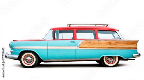 Classic Woodie Wagon in Vibrant Colors on White Background