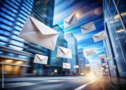 Airborne mail represented by white envelopes emphasizes corporate branding and marketing strategies. Professional communication, macro photography, and direct mail enhance financial services in today’