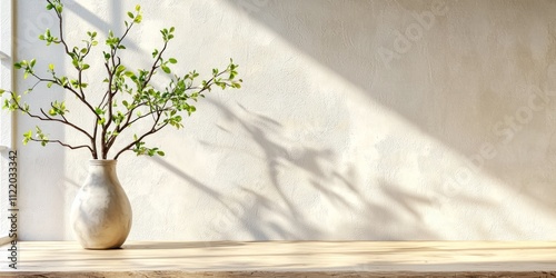 A minimalist room with a textured stucco wall and simple decor, conveying a timeless and artistic aesthetic.