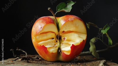 Genetically modified apple showcasing unique internal structure on dark background with natural elements for agricultural and food innovation visuals