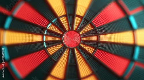 Bullseye Focus: A close-up shot of a dartboard, showcasing the intricate design and vibrant colors, symbolizing precision, focus, and the pursuit of perfection.