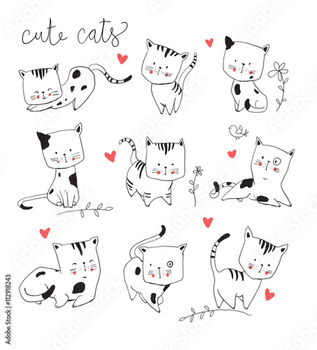 Drawing cute cat set
