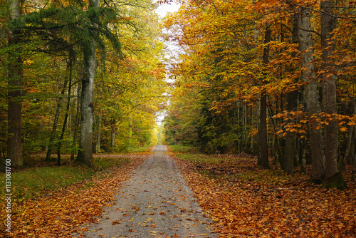 Waldweg im Herbst im Schönbuch bei Tübingen, Baden Württemberg; Deutschland