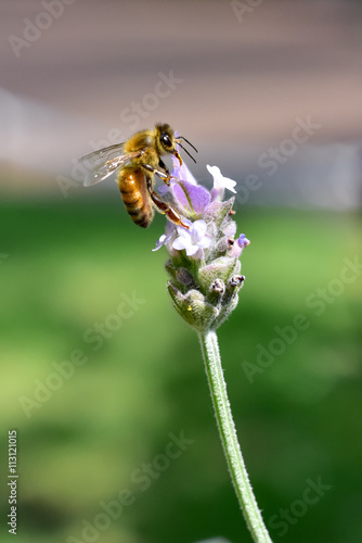 ラベンダーの蜜を吸うミツバチ クローズアップ