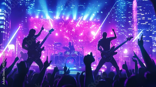 crowd at concert with music lights in the concert