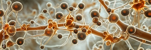 A microscopic image of fungal hyphae and spores in a detailed, crisp HD resolution