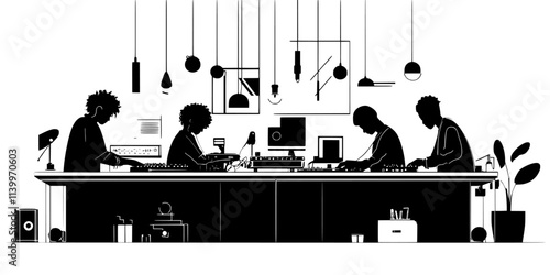 Person collaborating with others to produce hip-hop tracks in a studio, Digital Art