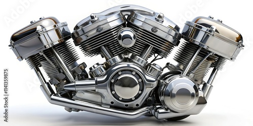 High-performance V-twin motorcycle engines: detailed illustrations of classic, custom, and chrome-plated mechanical marvels. Isolated for clarity.