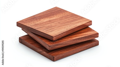 Three stacked wooden coasters with a smooth finish, showcasing a rich, warm hue typical of hardwood materials.