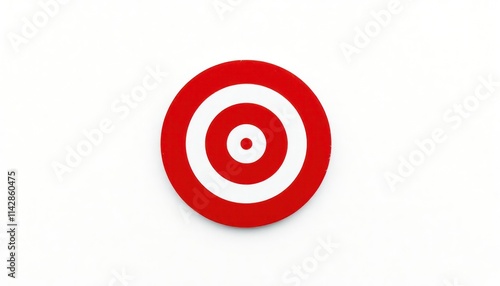 Simple red, white target on white background. Minimalist design. Goal oriented. Achieving objective. Geometric shape. Success symbol. Abstract graphic design. Focus concept. Sharp target. Clear