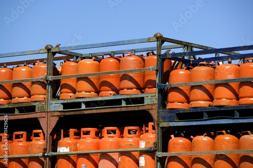 Botellas, bombonas de gas butano color Naranja. Orange Gas Racks