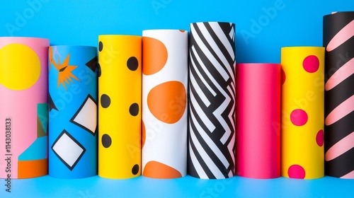 A colorful assortment of abstract geometric shapes and patterns intended for wrapping.