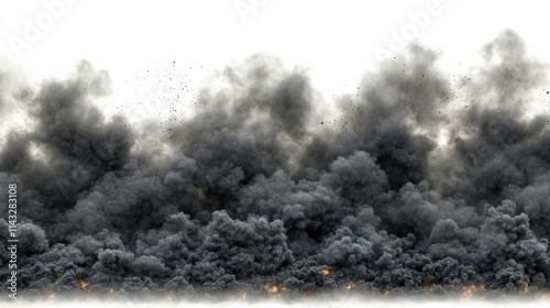 Dark Smoke Clouds Rising with Ashes and Flames in Background