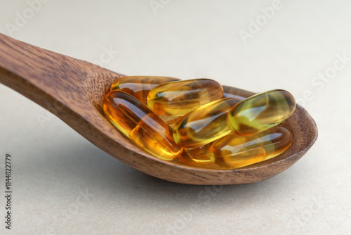 ein Läffel volle Omega-3 Kapseln mit Seefischöl, Nahrungsergänzung