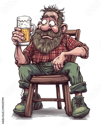 Cheerful Cartoon Character Raising a Beer Mug in Toast at the Bar